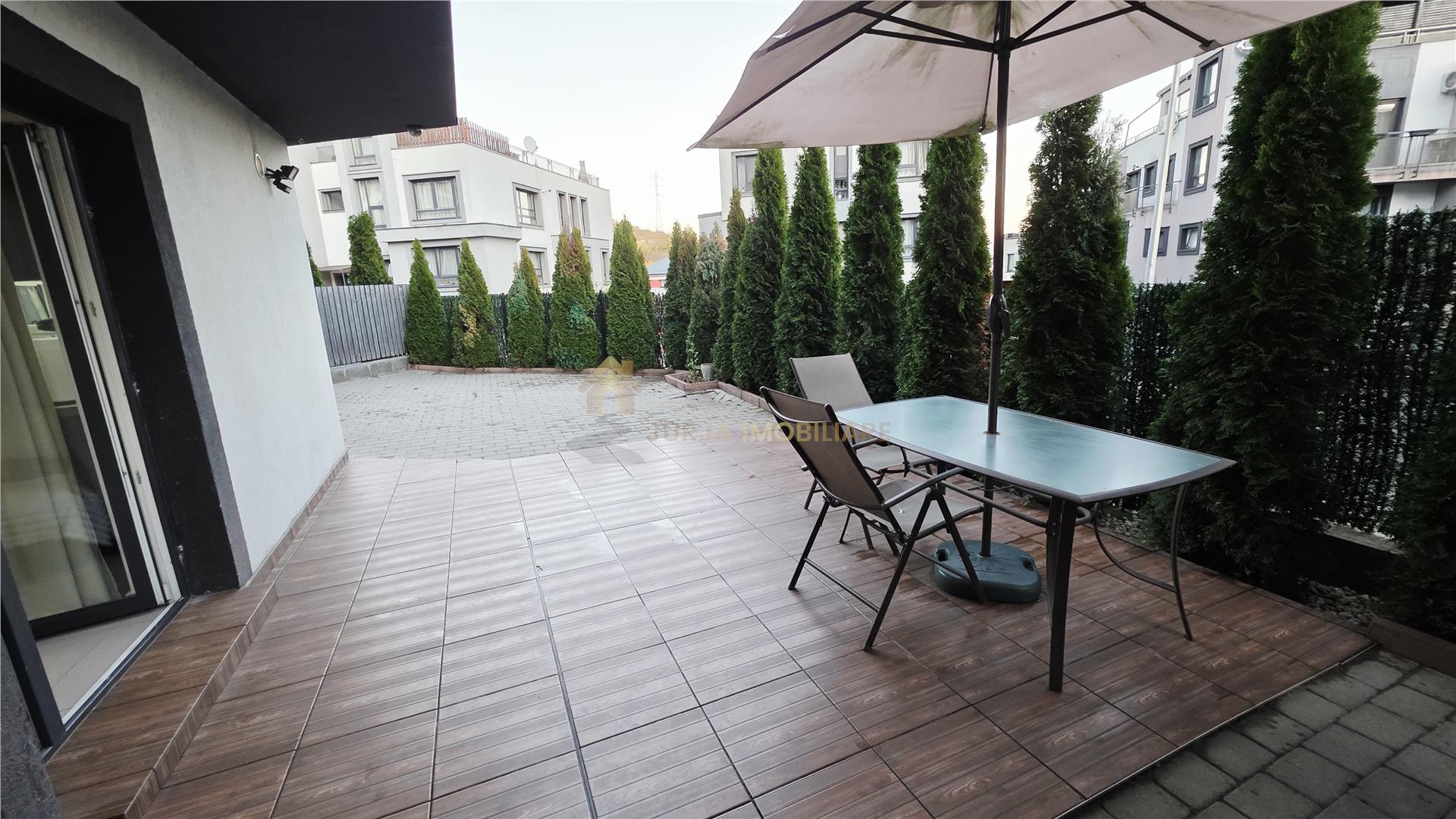 Curte proprie de 87 mp, la care se adaugă balconul închis de 9,35 mp (curte totală de 96,35 mp)