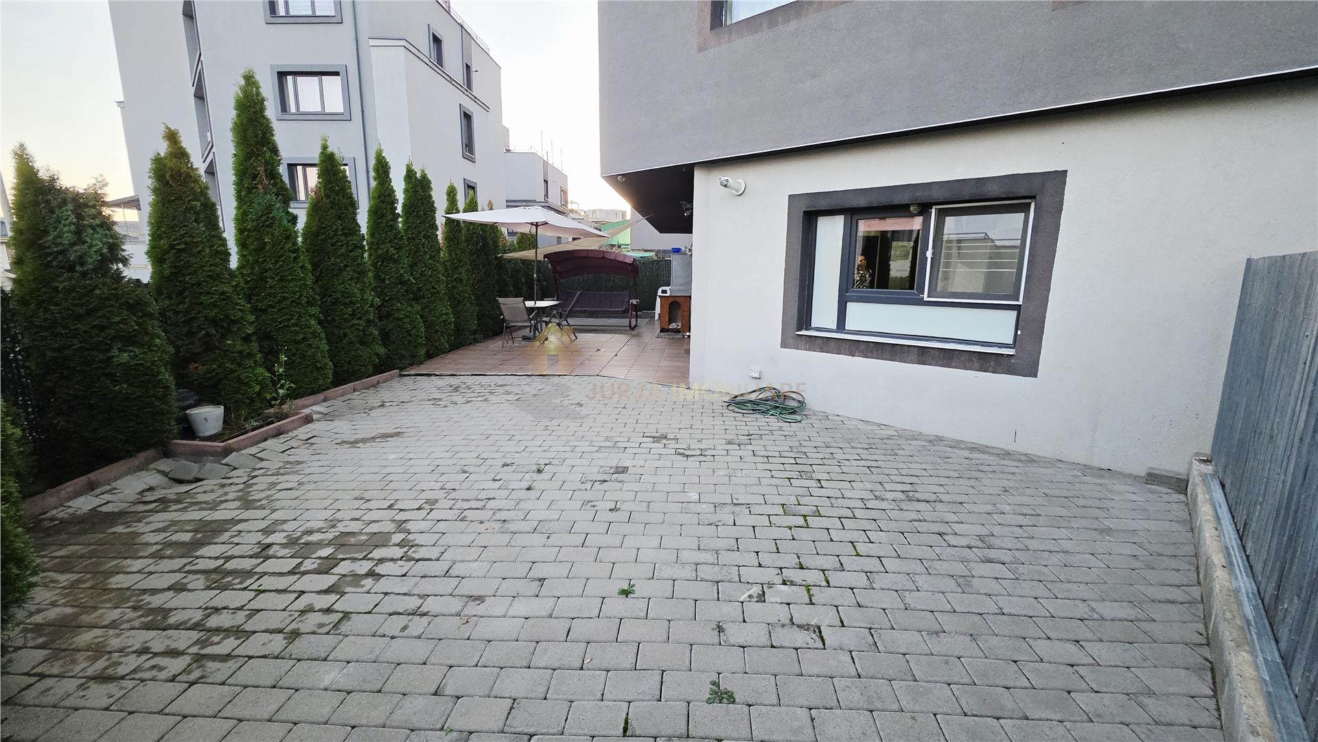 Proprietatea dispune de o curte privată spațioasă, perfectă pentru relaxare, grădinărit sau pentru familiile cu copii ori animale de companie.