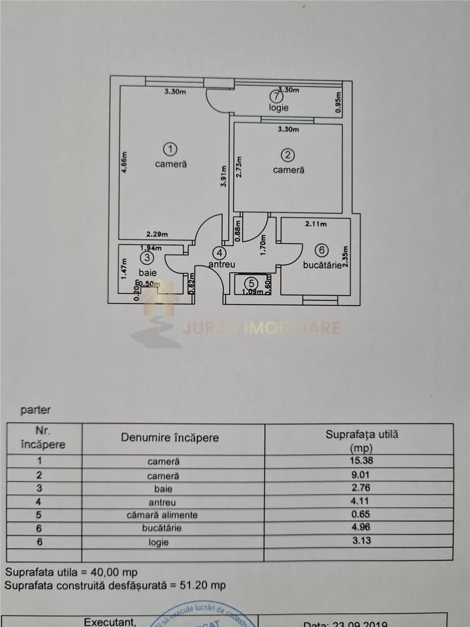 JURJA IMOBILIARE propune spre vânzare apartament cu 2 camere, de